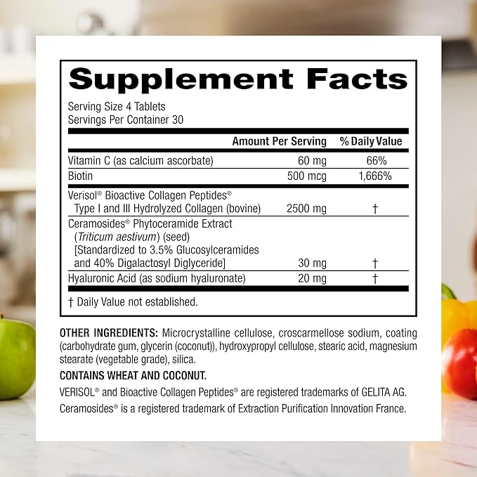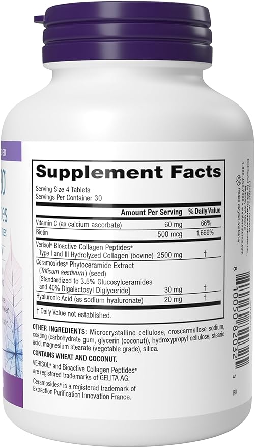 Webber Naturals Collagen30 with Ceramides, Bioactive Collagen Peptides, 120 Tablets, Hydrating Glow, Helps Improve Skin Hydration, Elasticity & Smoothness, Non GMO, Dairy & Gluten Free