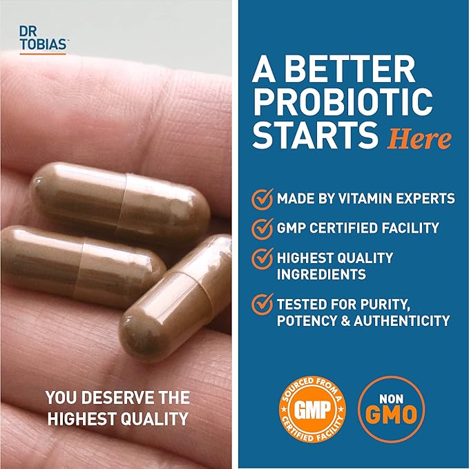 Dr. Tobias Probiotics 30 Billion, 10 Strains, 30 Billion CFU's, Targeted Release Probiotics for Women & Men, Supports Digestive Health, Shelf-Stable, Non-GMO, 60 Capsules, 60 Servings