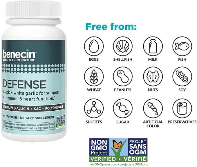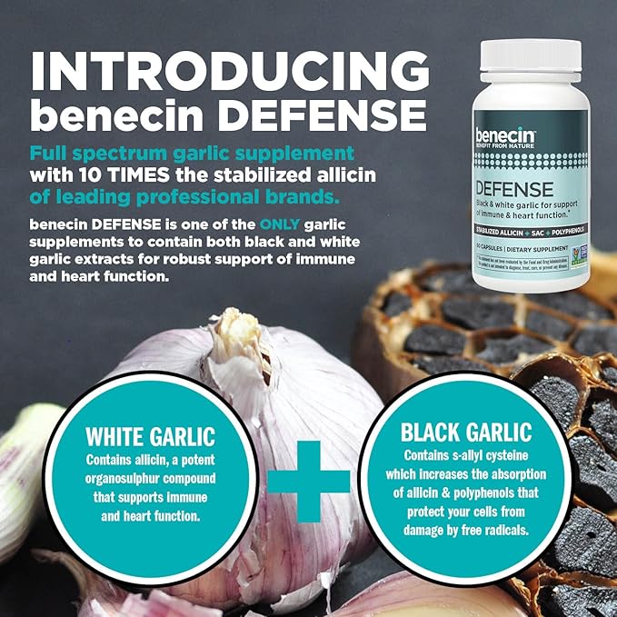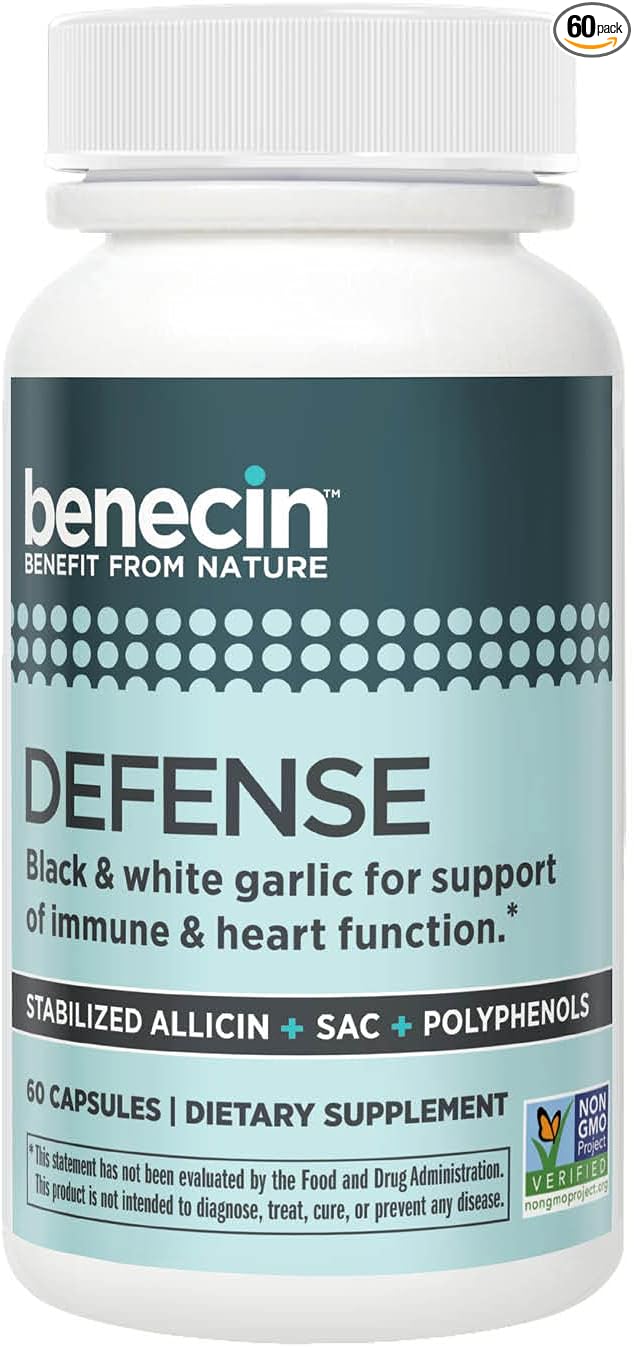 Benecin Defense 1500 mcg Stabilized Allicin per Capsule | Plus high Amounts of SAC & Polyphenols from Black Garlic | Powerful Support of Immune & Heart Function Vegetarian Caps (1 Count (Pack of 60))