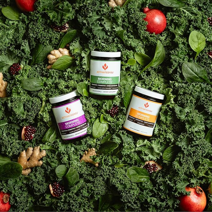 ACTIVATEDYOU Morning Complete Daily Wellness Greens Superfood Drink Mix for Gut Health w/Prebiotics, Probiotics, Antioxidants, Green Superfoods, 10 Billion CFUs, 30 Servings (Apple Cinnamon)