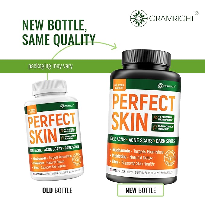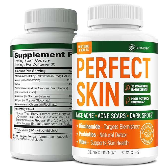 Perfect Skin Acne Capsules – Niacinamide, Biotin, Vitamin A & Probiotics for Teens & Adults – 13 Powerful Ingredients for Face Acne, Acne Scars & Dark Spots – 60 Vegan Capsules, Made in the USA