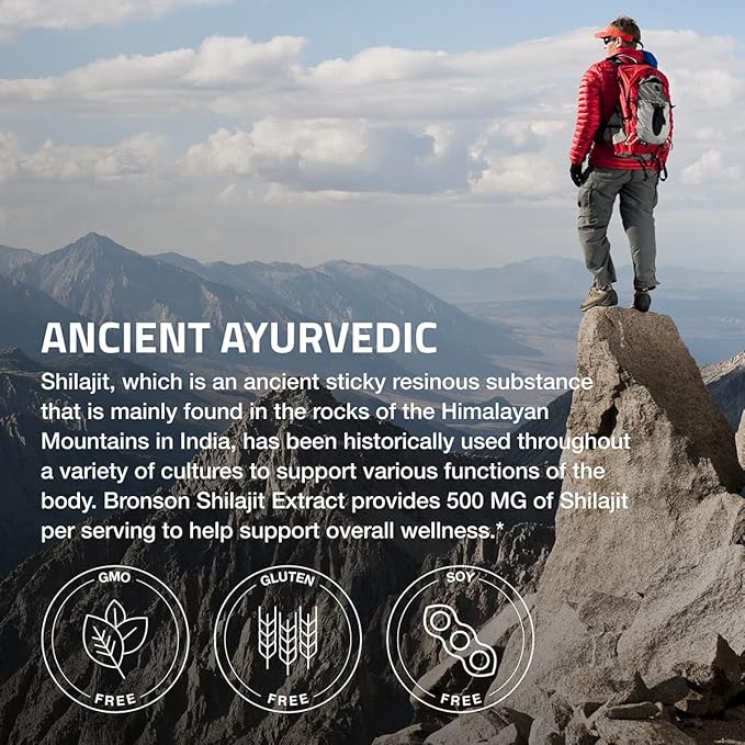 - Ancient Ayurvedic: Shilajit, which is an ancient sticky resinous substance that is mainly found in the rocks of the Himalayan Mountains in India, has been historically used throughout a variety of cultures to support various functions of the body. Bronson Shilajit Extract provides 500 MG of Shilajit per serving to help support overall good health and well-being.*