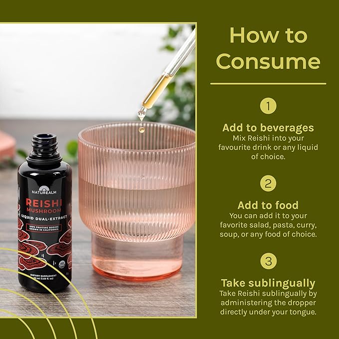 - SUPERIOR QUALITY & SOURCING: Sourced from organic California-grown fruiting bodies, Naturealm's Reishi extract was made to preserve quality and longevity. Our concentrated extract is high in beta-glucans, triterpenes, and other natural compounds known to give Reishi its Eastern name: “Mushroom of Immortality”.