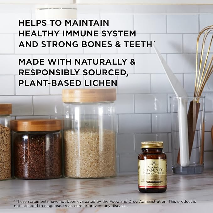 Solgar Vegan Vitamin D3 (Cholecalciferol) 150 mcg (6,000 IU) - 100 Softgels - Immune Support, Helps Maintain Healthy Bones & Teeth - Non-GMO, Certified Vegan, Gluten & Dairy Free - 100 Servings
