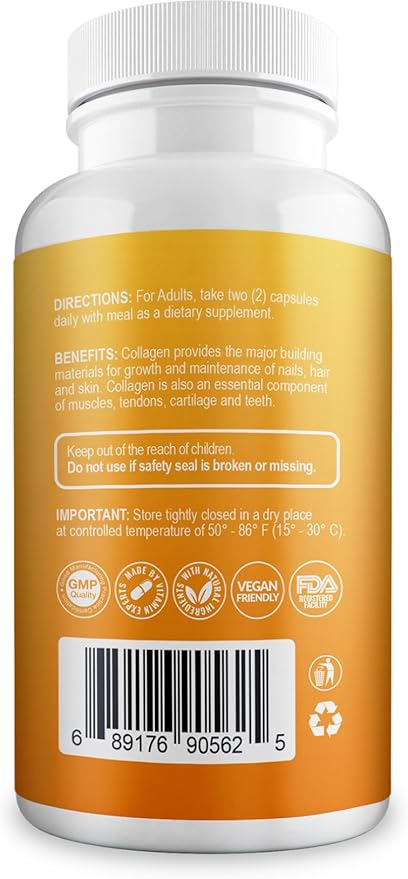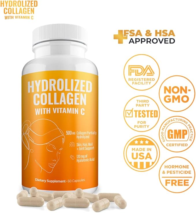 Aura Vitamin Hydrolyzed Collagen with Vitamin C Capsules 500mg Great Energy | Skin, Hair and Nail Support | Hyaluronic Acid Pills - 60ct (3)