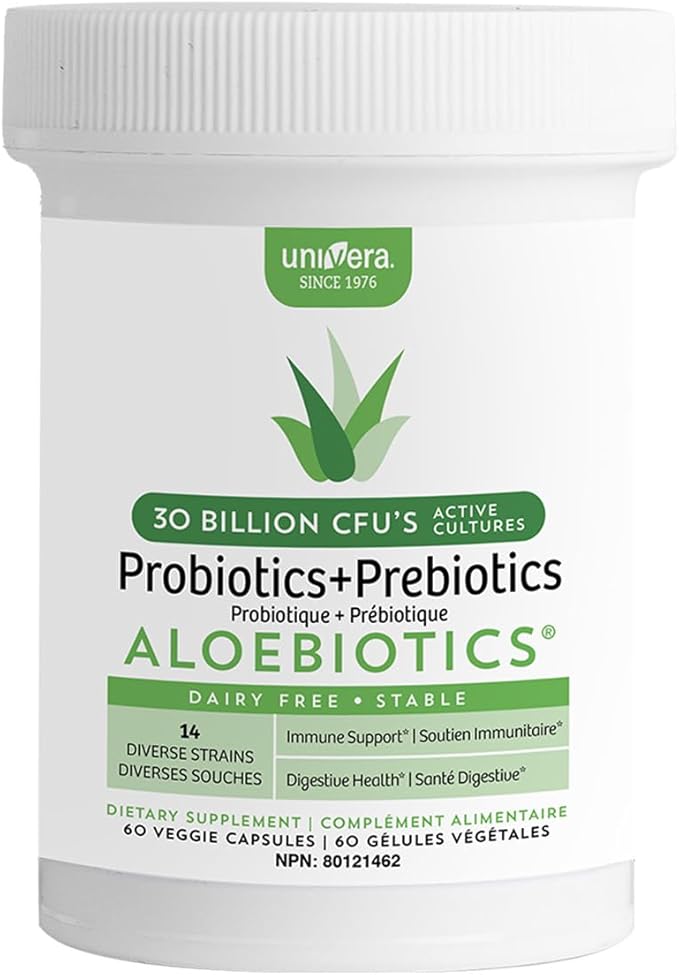 - PROBIOTICS + PREBIOTICS: Univera’s probiotics and prebiotics are made with extensive research for men and women. Our prebiotics are naturally sourced from organic aloe vera. Aloe vera is known to help keep gut bacteria in balance, which is essential to enhance the process of digestion. A complete supplement for a total gut health boost. Made with 14 probiotic strains and non-GMO ingredients. with no unnecessary binders, gluten, milk, egg, wheat, peanuts, shellfish, or preservatives.