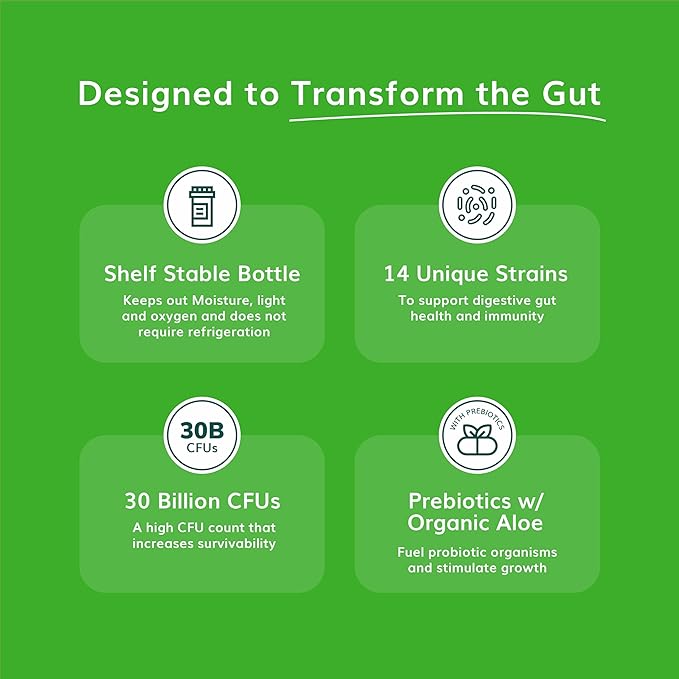- FARM TO FAMILY-INSPIRED PROBIOTIC SUPPLEMENT: Contains 14 probiotic strains in a patented Shelf-Stable bottle that ensures probiotic culture stability. Our prebiotics contain organic aloe vera which is a source of essential micronutrients. It keeps our body from dehydration and helps constipation. Our probiotic supplement increases digestive enzyme production that improves nutrient absorption in our gut. Great for occasional gas and bloating relief, constipation, and overall digestive health. *