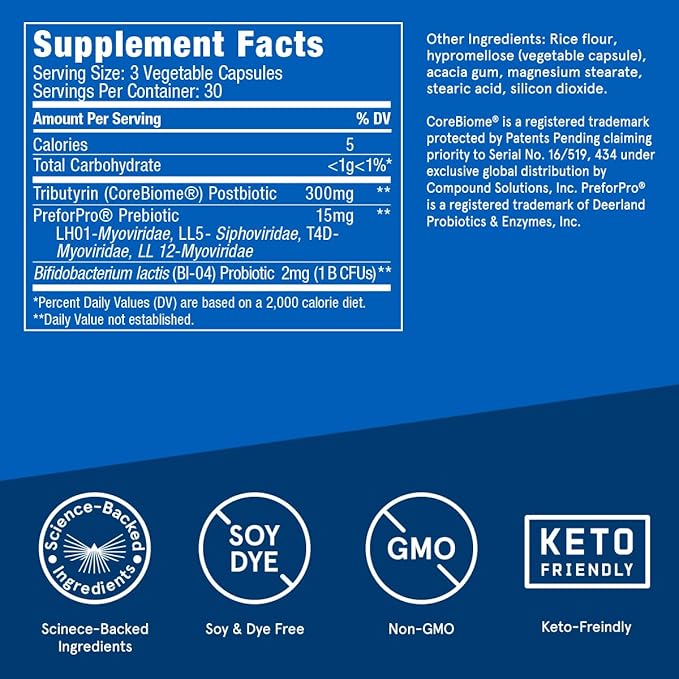 - Delivers a science-backed postbiotic for rapid gut support, plus a synergistic blend of probiotics and prebiotics to promote healthy digestion and a thriving microbiome