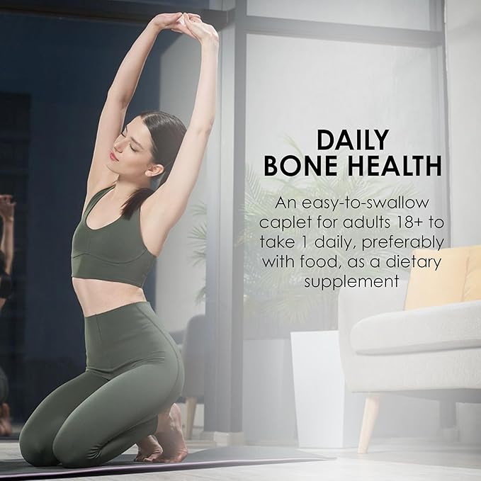 - DAILY BONE HEALTH: An easy-to-swallow caplet for adults 18+ to take 1 daily, preferably with food, as a dietary supplement