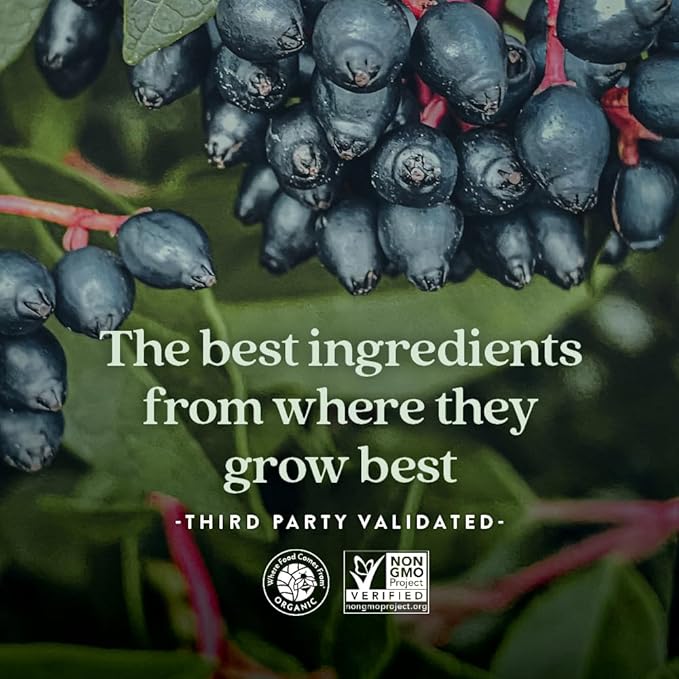 - Berry-Citrus Flavored, Non-GMO Project Verified, Made with Certified Organic Fiber+, 100% Vegetarian, Gluten Free, No Synthetic Fillers, No Animal Gelatin (added to some gummy vitamins), Free from 8 Major Food Allergens