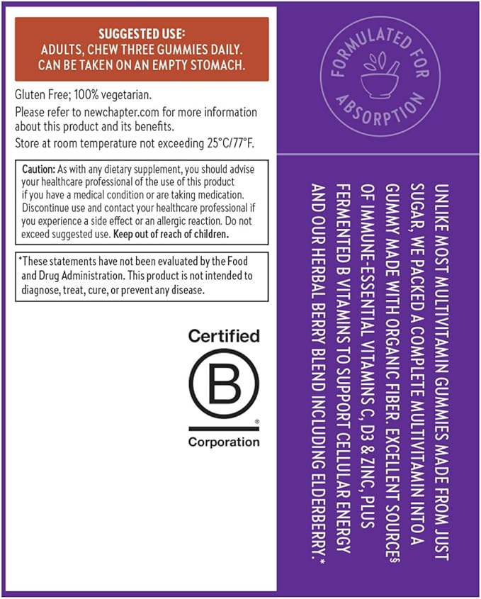 - Berry-Citrus Flavored, Non-GMO Project Verified, Made with Certified Organic Fiber+, 100% Vegetarian, Gluten Free, No Synthetic Fillers, No Animal Gelatin (added to some gummy vitamins), Free from 8 Major Food Allergens