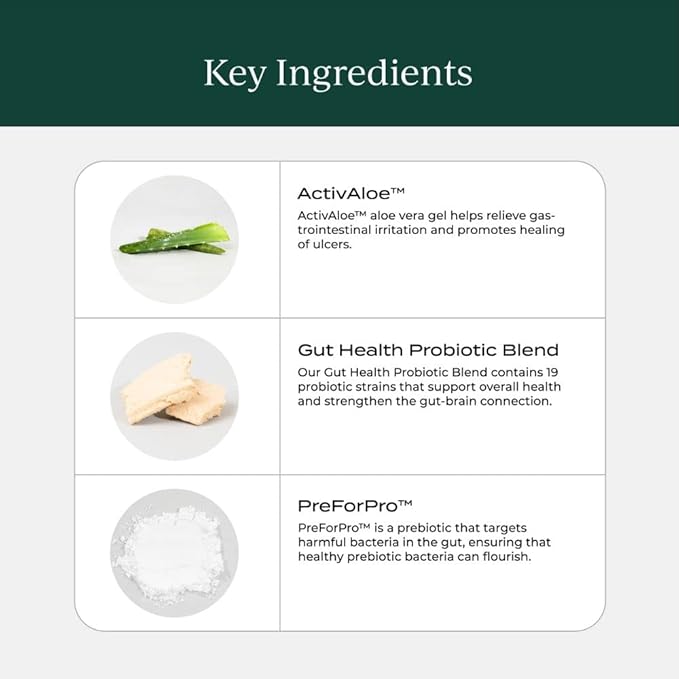 - GUT HEALTH SUPPORT: Our probiotic can provide gut health support and help you reach your weight loss goals. Included in our formula are patented ingredients which can help with digestion and bloating. These include PreforPro which targets harmful bugs in the gut to ensure healthy prebiotic can flourish, and ActivAloe aloe vera gel which can help soothe the intestinal lining.