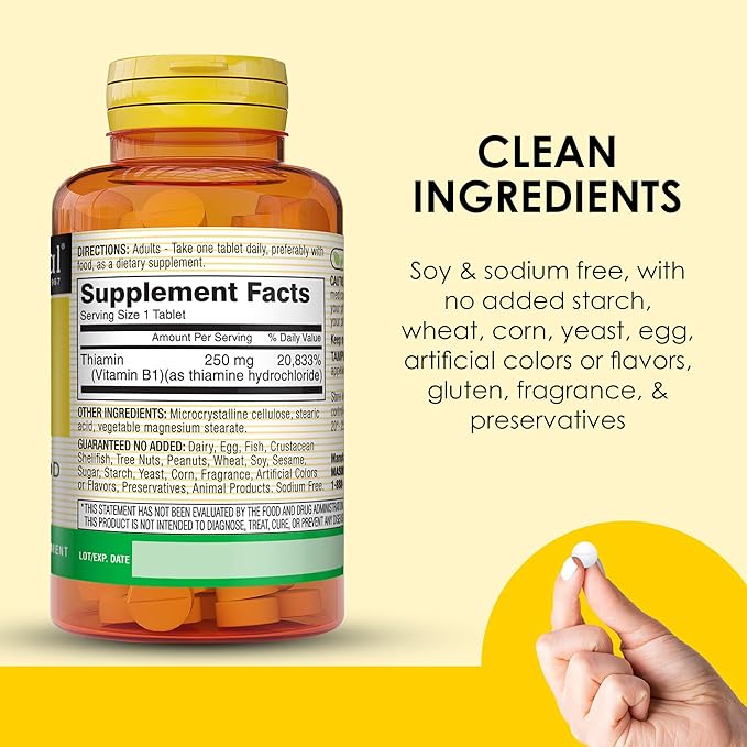 MASON NATURAL Vitamin B1 Thiamine 250 mg, 300-Day Supply, Dietary Supplement to Support Natural Energy Levels, 100 Tablets (Pack of 3)
