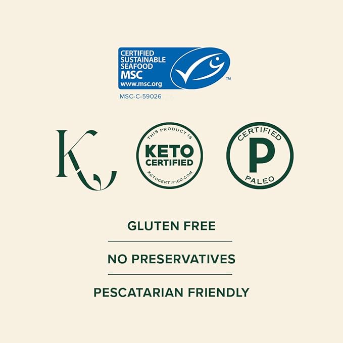 - MADE FOR YOU: iGen Non-GMO Tested, Wild Caught, Pescatarian-Friendly, KETO-Certified, Certified Paleo, Gluten-Free, and No Preservatives. No added dairy or sugars.