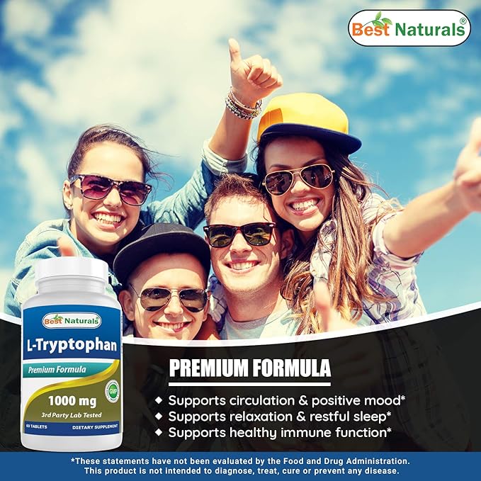 Best Naturals L-Tryptophan 1000 mg 60 Tablets (60 Count (Pack of 3))