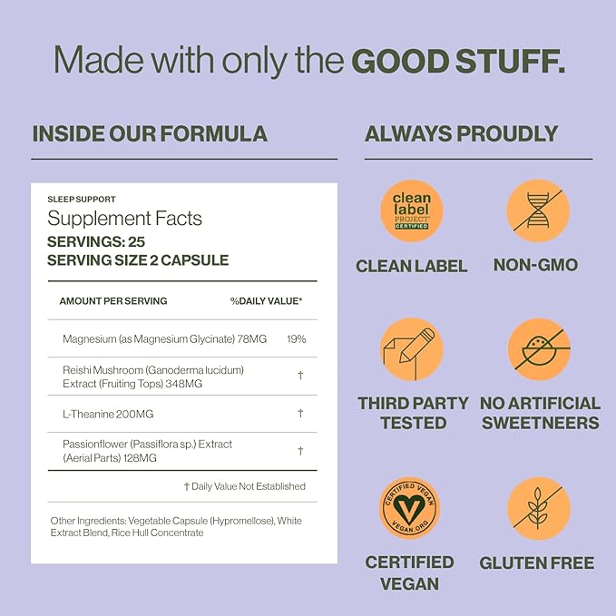 • Powerful herbal support: Sweet dreams are made of these 4 effective sleep aid ingredients; magnesium, l-theanine, reishi mushroom and passionflower;* hormone-free, unlike melatonin; always 3rd-party lab tested