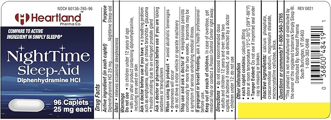 - RELIEVES OCCASIONAL SLEEPLESSNESS: 480-count bottle of Heartland Pharma Co Nighttime Sleep Aid to help relieve occasional sleeplessness by easing you into sleep so you wake up feeling refreshed and ready for your day.