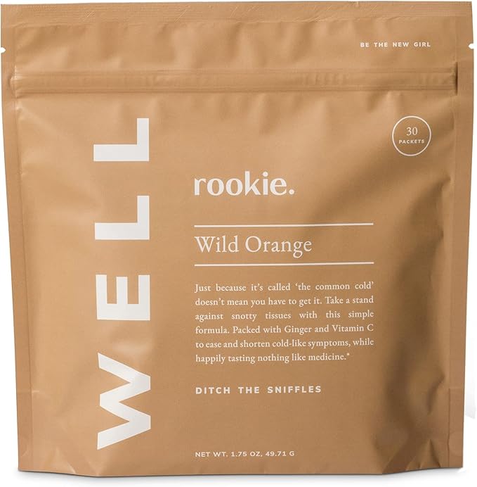 Rookie Wellness Well – Vegan Immune Support Packets with 1000 mg of Vitamin C, 14 mg of Vitamin E, and Ginger in a Natural Citrus Flavor - Sugar and Filler Free (30 Servings, Wild Orange)