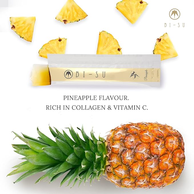 - 【Beauty Benefits】 BI-SU Extract Jelly Sticks contain swiftlet's nest extract, white fungus, and fish collagen peptide. Our collagen helps to improve the skin's elasticity and boost moisture retention and gives your skin a healthy, supple effect. It also helps to relieve fatigue, rejuvenate not only the skin, but also your hair, and nails, while offering anti-aging benefits. This product is enriched with a balanced blend of vitamin C that is equivalent to approximately 4 lemons.