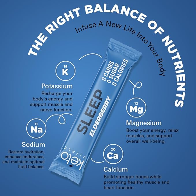 - Wellness and Slumber Support - To help rehydrate and achieve a better night's sleep, get Keto Vitals’ keto-friendly electrolyte sleep powder packets. Our natural electrolyte powder is packed with antioxidants, vitamins, and amino acids for optimal rest and rehydration.