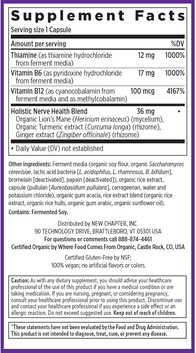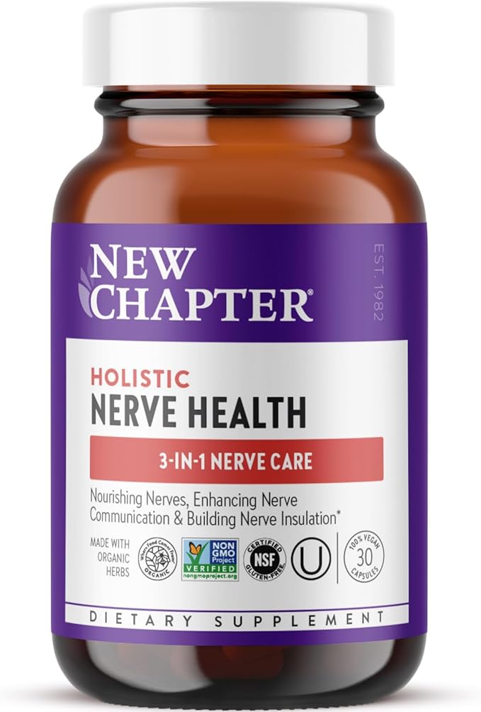 New Chapter Nerve Health Supplement for 3-in-1 Support from Head to Toe - Vitamin B1 Generates Energy for Nerves, Vitamin B6 Enhances Healthy Transmission, Vitamin B12 Builds Insulation, 30ct