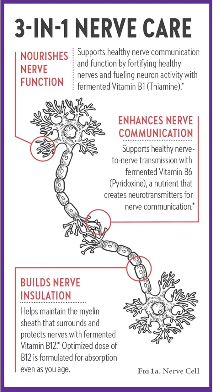 - NERVE BENEFITS YOU CAN FEEL: B1 generates energy for your nerves, B6 supports healthy nerve-to-nerve transmission, and B12 builds nerve insulation and nerve protection*