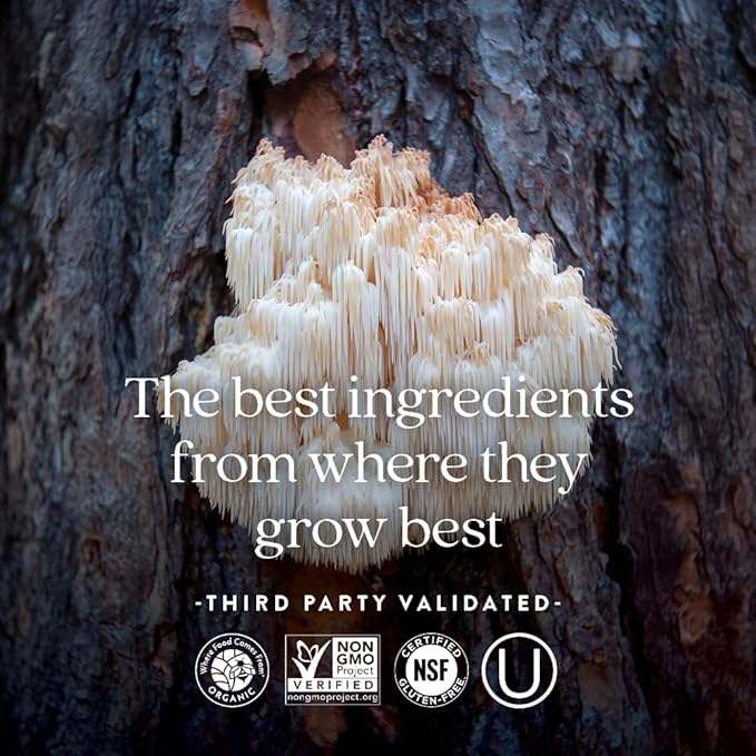 - COMPLEMENTARY HERBS: Enhanced with our Holistic Nerve Health blend including organic Lion’s Mane mushroom, Turmeric & Ginger