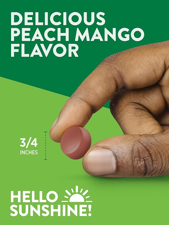 - VEGETARIAN GUMMIES: Two delicious peach mango flavored gummies per day