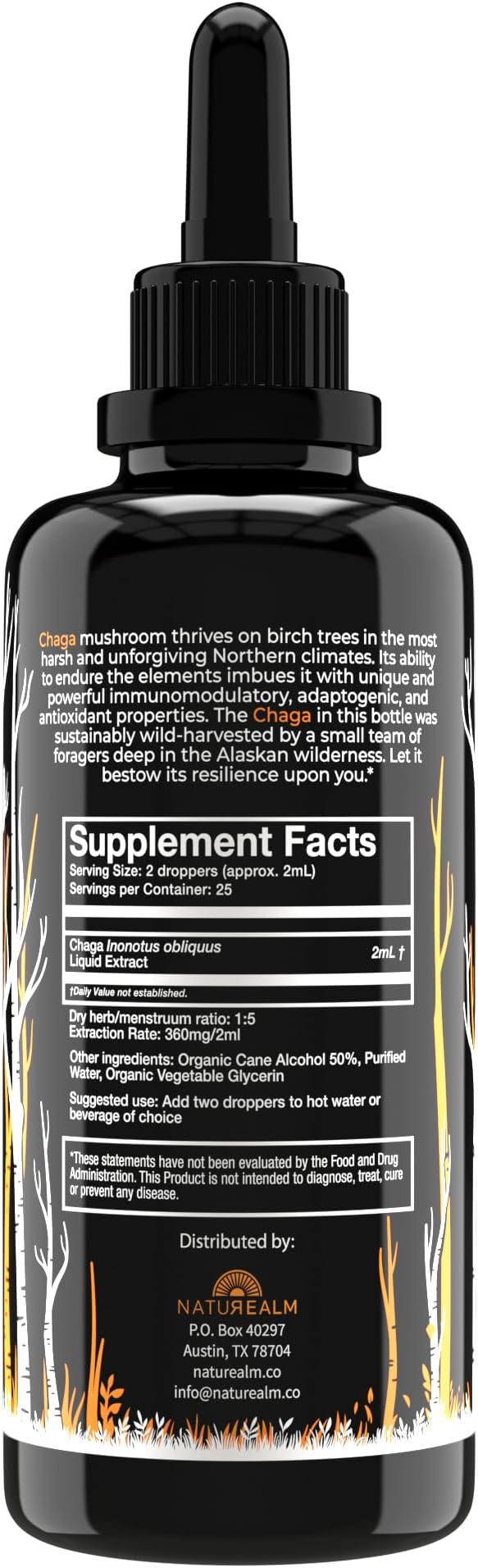 - Better By Design: Naturealm mindfully formulates products with regard for your and the planet's health. We build close relationships with the people who cultivate and forage for our raw materials and weave that quality assurance and transparency back in our products. Our Chaga extract’s ingredients boast a strong compendium of holistic use by various cultures throughout the ages.