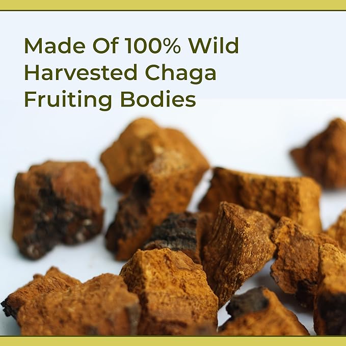 - Potent Chaga Mushroom Extract: Foragers in and native to North Central Alaska send freshly ground, high-quality, and 100 percent mushroom Chaga to a GMP-certified facility for natural processing and tincturing. Extracting the ground Chaga mushroom powder includes soaking the grounds in organic cane alcohol for 30 days for the first extraction. For the second extraction, the grounds simmer in hot water for 24 hours. Combining these solutions creates Chaga Mushroom Tincture.