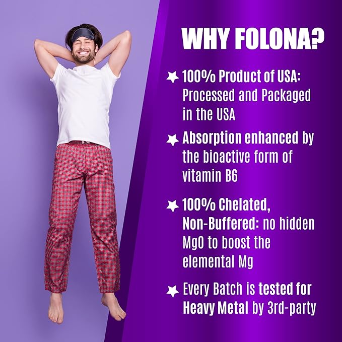 - MENTAL WELLNESS: Magnesium Glycinate effectively supports a full spectrum of mental wellness, including stress relief, migraine relief, headache relief. It is an excellent natural sleep aid as it promotes healthy nerve functions to relieve cramps for a greater sense of relaxation, calm, and restful sleep. Enjoy Life Better with Folona!