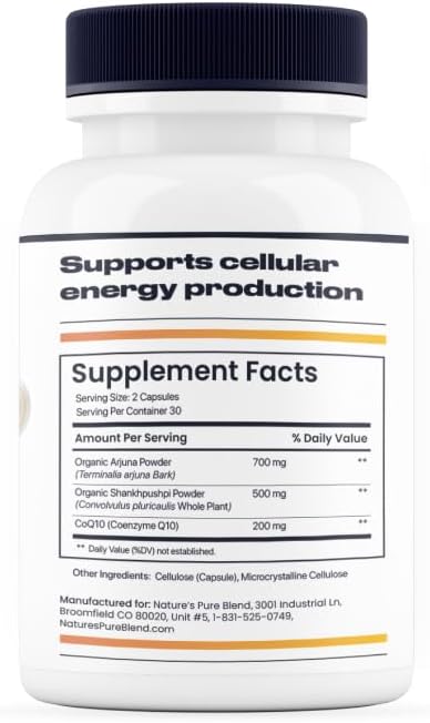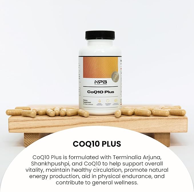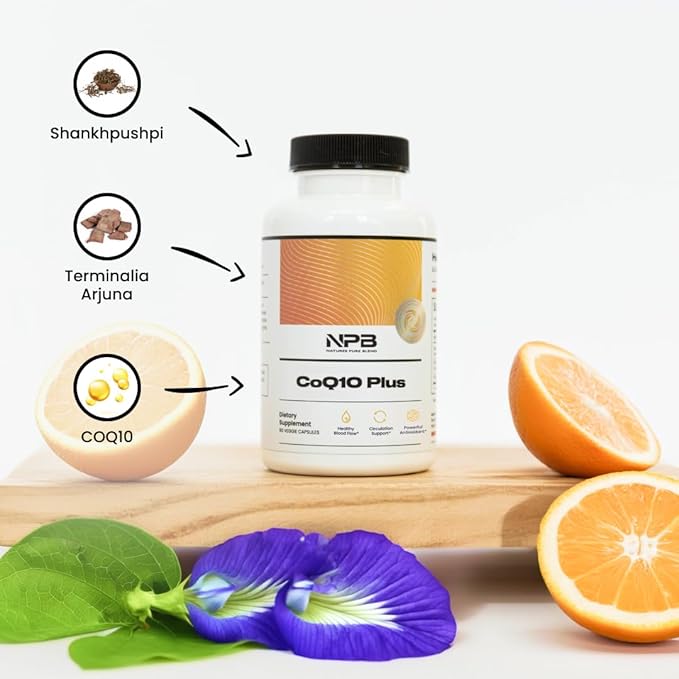 Nature's Pure Blend CoQ10 Plus – Antioxidant Formula with Arjuna & Shankhpushpi – CoQ10 Ubiquinol for Circulation, Blood Flow & Energy – Coenzyme Q10 Supplement for Immune System – 60 Capsules