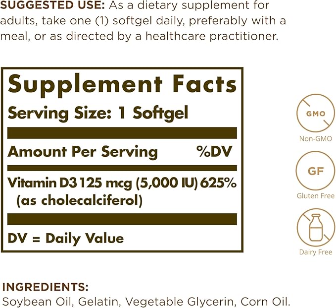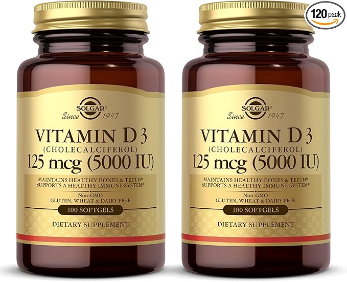 Solgar Vitamin D3 (Cholecalciferol) 10 mcg (400 IU) - 100 Softgels, Pack of 2 - Helps Maintain Healthy Bones & Teeth - Immune System Support - Non-GMO, Gluten Free, Dairy Free - 200 Total Servings