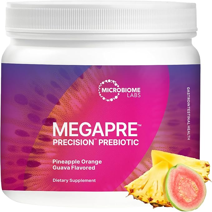 Microbiome Labs MegaPre Prebiotic Fiber Powder for Women, Men & Kids - Pineapple Orange Guava Prebiotic Fiber Supplement Powder with Clinically Tested Oligosaccharides for Microbial Support (5.5 Oz)