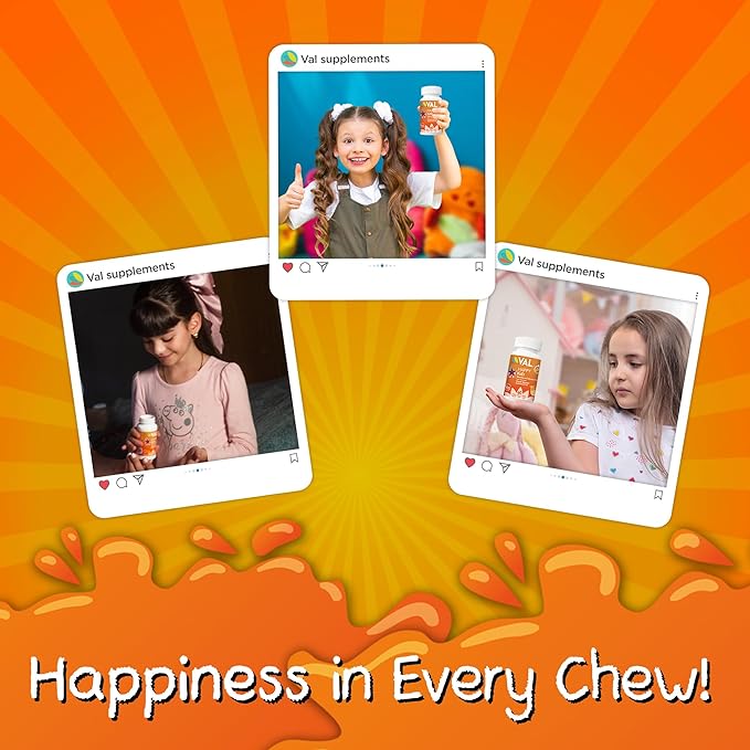 VAL Magnesium for Kids | High-Absorption Magnesium for Calm, Relaxation & Focus | Mg Glycinate, Citrate & Taurate | with Vitamin B6, D & C | Sugar-Free, Non-GMO | 60 Chewable Tablets