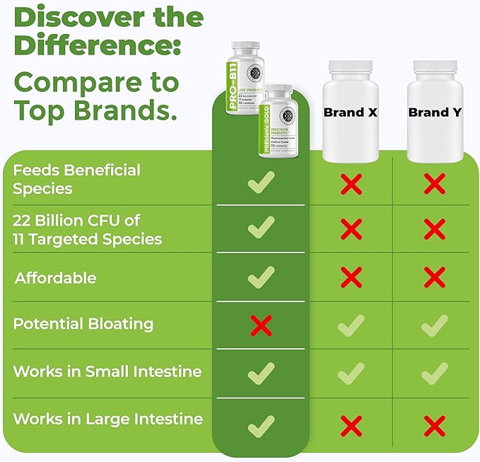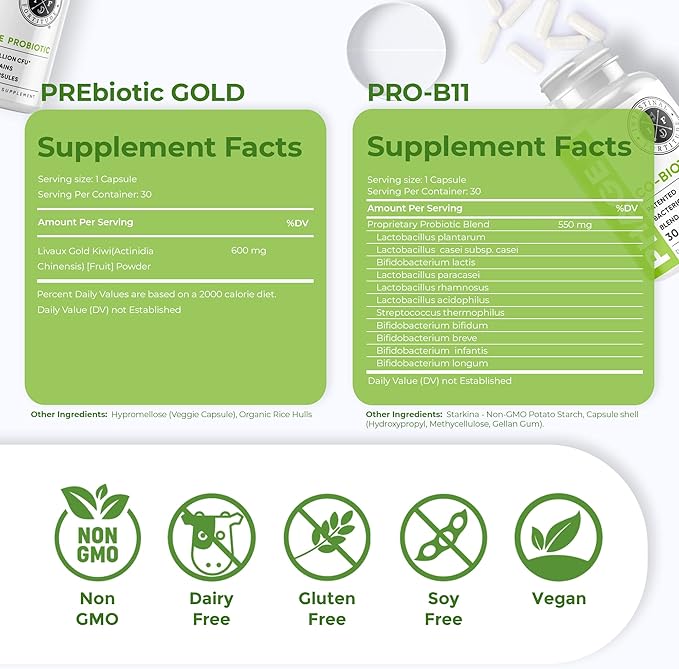 - MADE IN THE USA: Our Prebiotic and Probiotic Gut Supplement Bundle is proudly made in the USA.