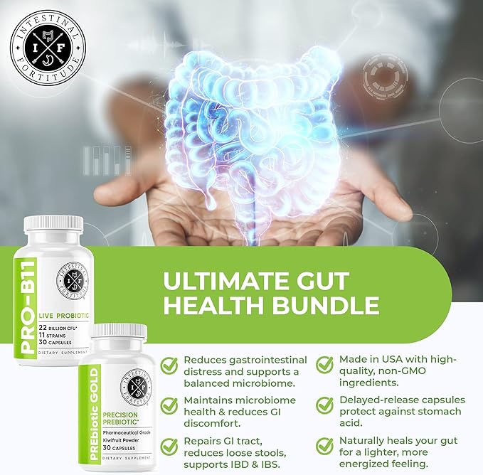 - ENHANCE YOUR GUT: Intestinal Fortitude's Prebiotic and Probiotic Gut Supplement Bundle are designed to help fortify your microbiome and nourish beneficial organisms in the digestive tract.