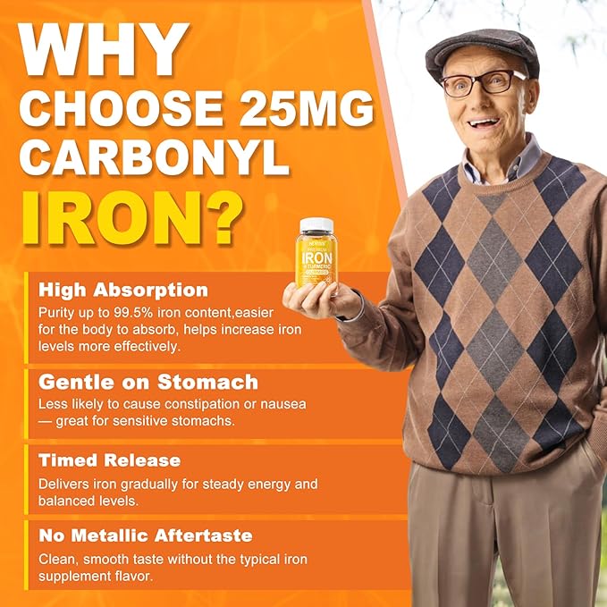 - ULTRA-BIOAVAILABLE, GENTLE IRON FORM: Meet the Iron that "gets it". Our premium carbonyl iron is over 98% pure, making it super gentle on your stomach and incredibly effective—no heavy doses or gut-wrenching side effects. Unlike those iron salts like ferrous sulfate, a little goes a long way with this ultra-bioavailable form, meaning you’ll get all the perks without the bloating or discomfort. Less iron, more results? We’ll take it!