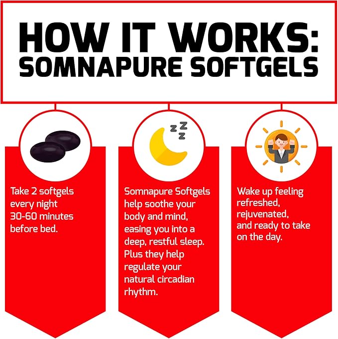 - EASY-TO-SWALLOW SOFTGELS: Say goodnight to big, bulky capsules. Somnapure Softgels are small, sleek, and easy to swallow, and contain a powerful combination of ingredients to help you get the rest and relaxation you deserve.