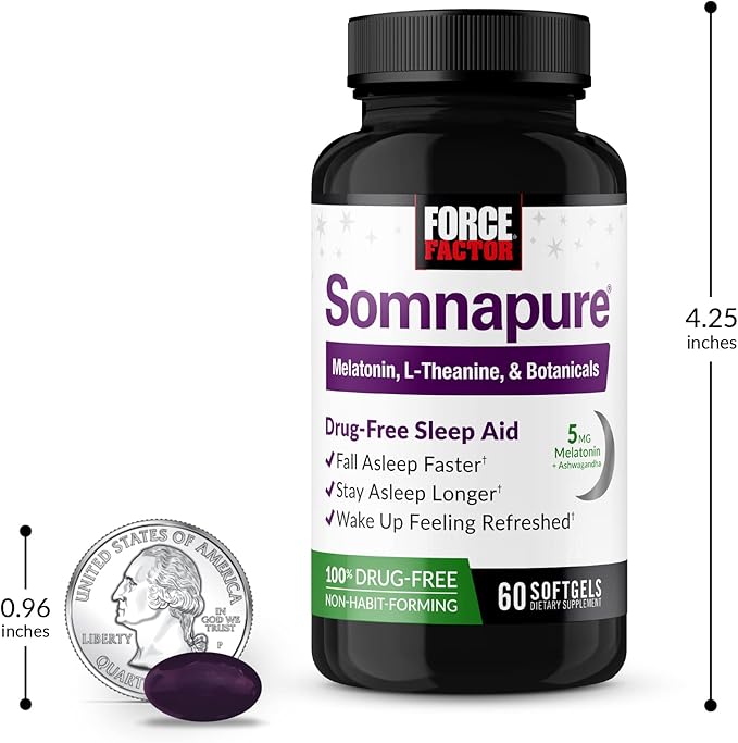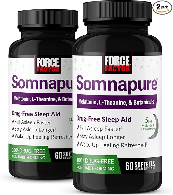 FORCE FACTOR Somnapure Softgels 2-Pack Sleep Aid to Fall Asleep Faster, Stay Asleep Longer, Wake Up Refreshed, Sleep Aid for Adults with Melatonin, Ashwagandha, Valerian Root, 120 Softgels
