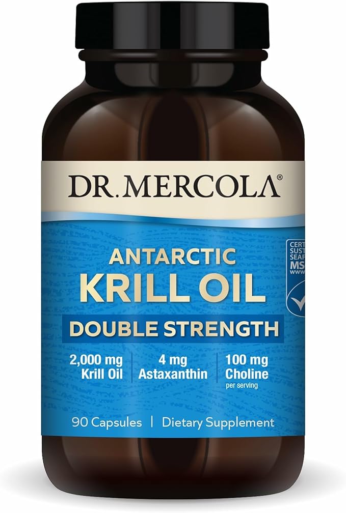Dr. Mercola Antarctic Krill Oil Double Strength - 2,000 mg - Omega-3 Supplement with EPA & DHA - Supports Brain, Heart, Joint & Immune Health - GMO-Free & Gluten-Free - 90 Capsules (30 Servings)