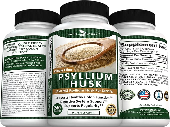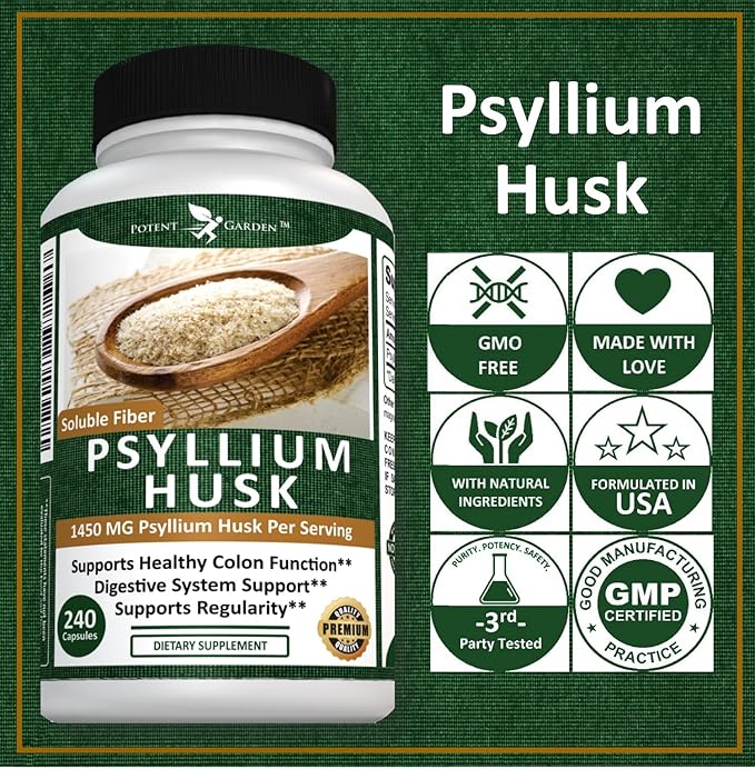 - ALL NATURAL INGREDIENTS. Potent Garden Psyllium Husk fiber supplement, available in fiber supplement capsules is formulated in the USA in a GMP approved facility to ensure quality & potency. Experience all the benefits of our Psyllium Fiber supplement for men and women for a healthier you. Get yours today!