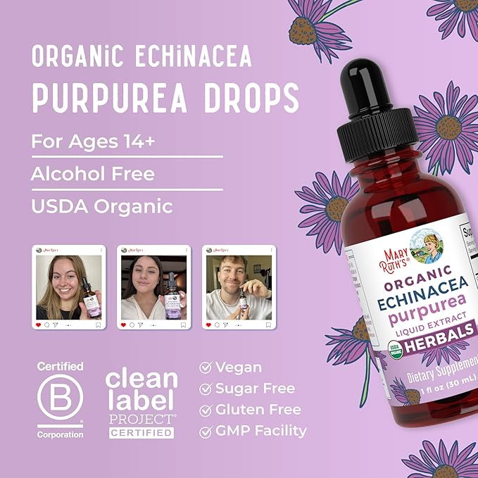 MaryRuth Organics Herbal Supplement Drop | Immune Support | USDA Echinacea Purpurea Liquid | Immune Support | Skin Health | Vegan | Non-GMO | Gluten Free | 1 Fl Oz