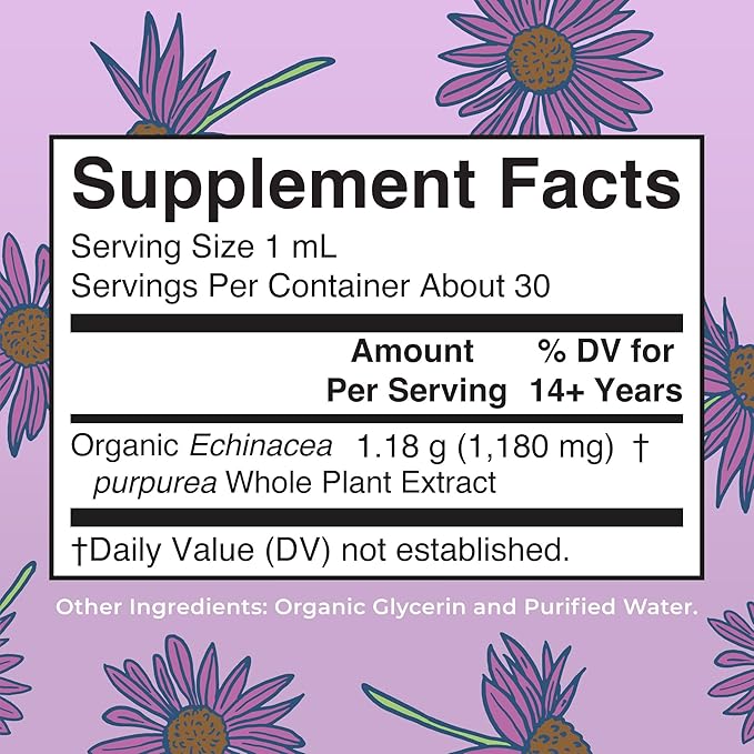 - Formulated with the whole plant of organic echinacea purpurea, these easy-to-take liquid drops come in an alcohol-free tincture.