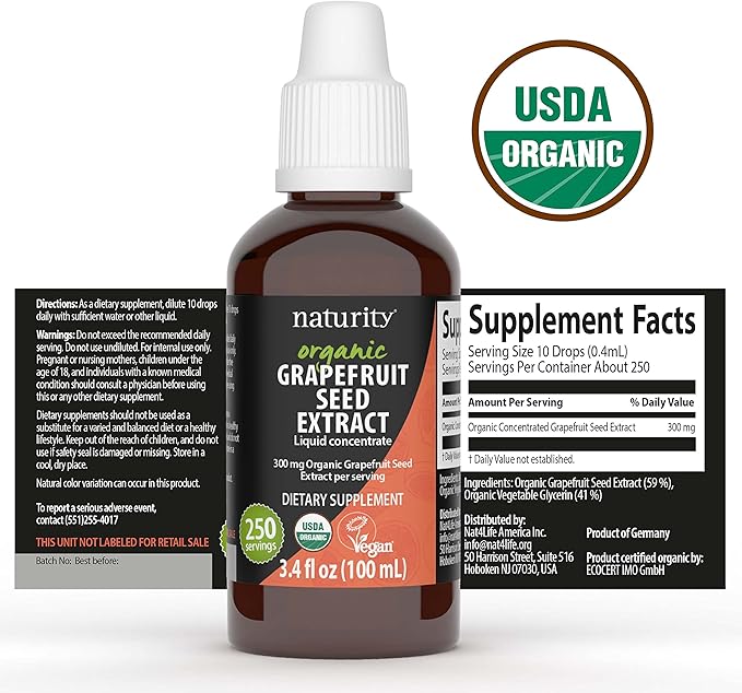 naturity Organic Grapefruit Seed Extract Supplement -300mg Grapefruit Seed Extract/Serving, 82 Day Supply - Pure GSE Liquid Concentrate, 3.4 fl oz (100ml)