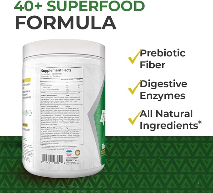 - COMPLETE GREENS SUPERFOOD FORMULA - Alpha Greens has over 40 plant-based ingredients as well as Spectra Antioxidant Blend, prebiotic fiber, digestive enzymes, and Probiferrin probiotics to support total body wellness and a healthier, active lifestyle.*