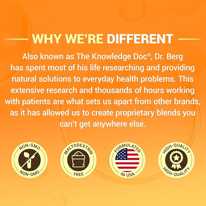 - ๐ช๐๐ฌ ๐ช๐โ๐ฅ๐ ๐๐๐๐๐๐ฅ๐๐ก๐ง - Also known as The Knowledge Doc, Dr. Berg has spent most of his life researching and providing natural solutions to everyday health problems. This extensive research and thousands of hours working with patients are what sets us apart from other brands, as it has allowed us to create proprietary blends you canโt get anywhere else.
