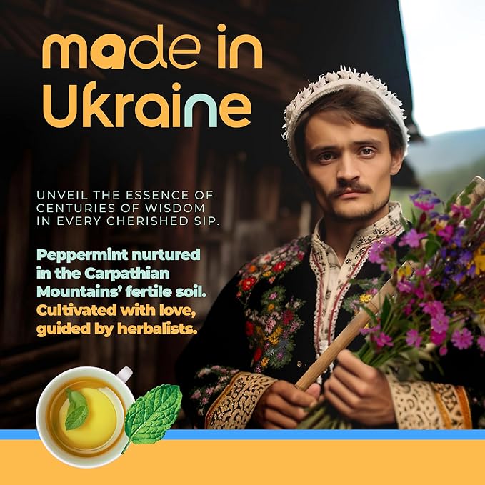 - From Carpathian Mountains’ fertile lands: Experience the natural essence of our peppermint tea, carefully selected and grown in this pristine region of Ukraine. Refresh your senses with every sip.