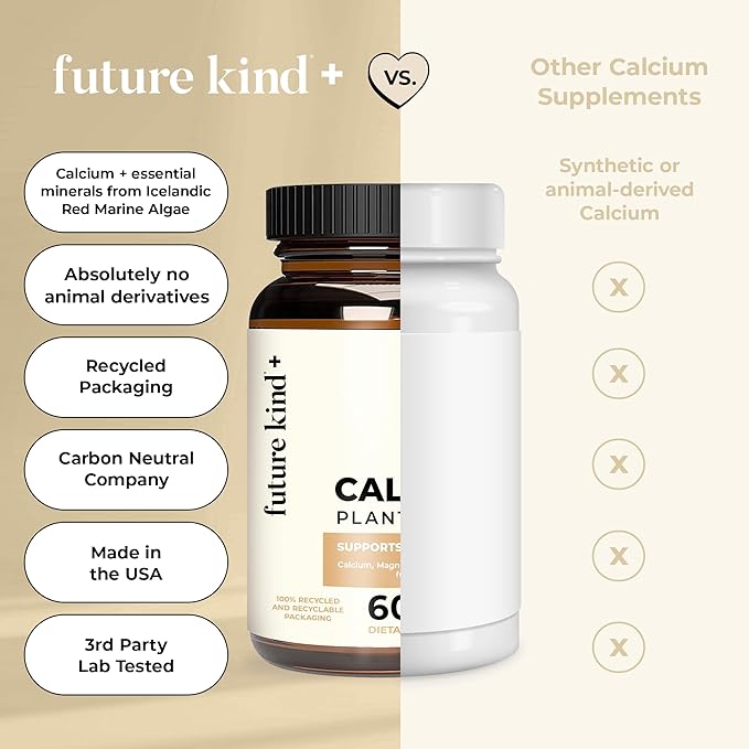 Future Kind Vegan Calcium Supplement - Plant-Based Calcium Magnesium Supplement Sourced from Iceland for Teeth & Bone Support (60 Capsules)