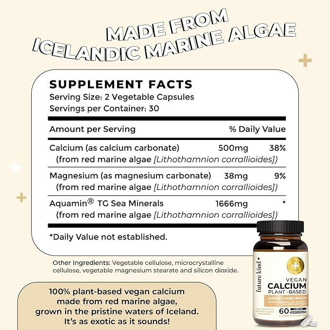 - Supports Plant-Based Diets: Sustainably sourced from the untouched waters in the North Atlantic, off the coast of Iceland, red marine algae is as clean and natural a source of calcium as it gets.